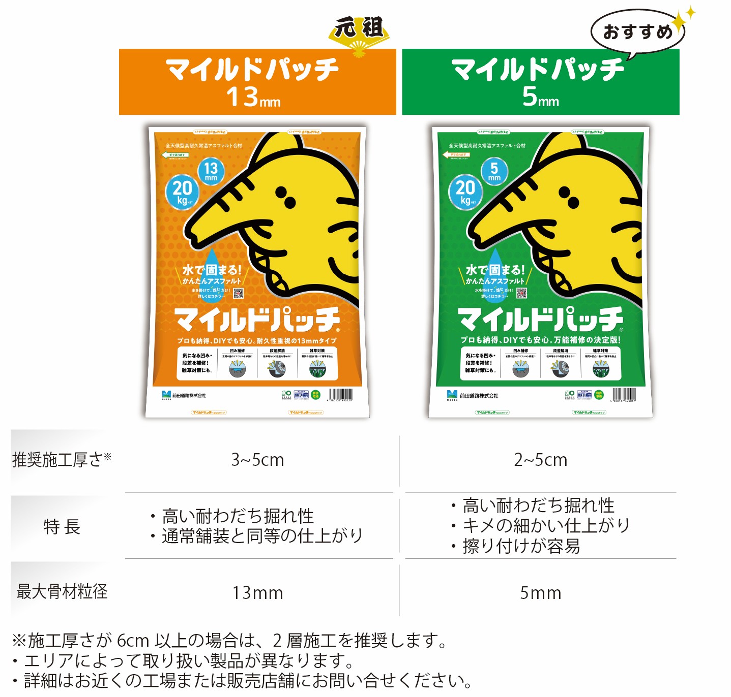 前田道路独自の技術により開発した、全天候型および高耐久型の常温アスファルト混合物です。