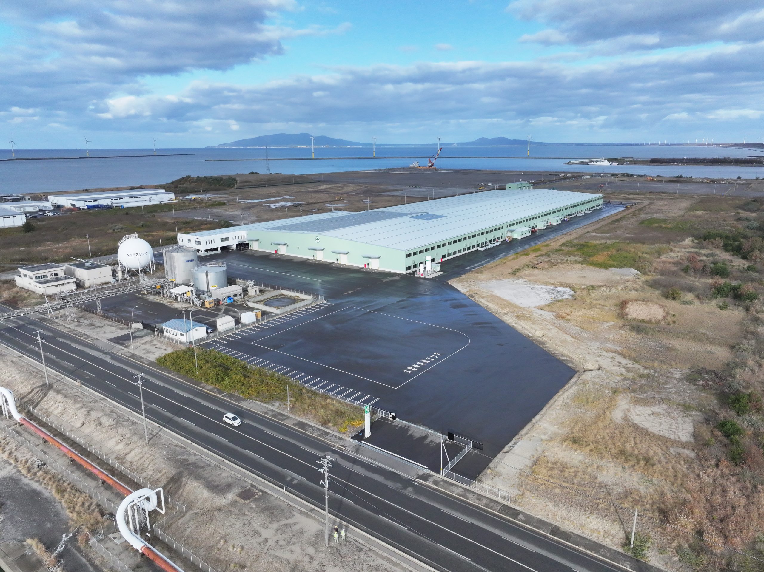 主に鋼材を製造する本社工場の新築工事に伴う外構工事を施工しました。施工面積は全体で8.5ha。そのうち、アスファルト重耐舗装19,269㎡、アスファルト駐車場舗装15,678㎡、冠水対策工として地下貯留浸透槽を3箇所・合計234㎥施工しました。本社社屋1階駐車場では、透水性舗装を行いました。(工事期間:2024年1月~9月)また、本体工事に加えて追加工事として「機材庫・塗料庫建築工事」に伴う外構整備も設計・施工で行いました。(工事期間:2025年3月~11月)南に秋田港、北に男鹿半島を望む立地にて、千代田興業株式会社様が地域に根ざした本社づくりを進めるにあたり、当社が外構計画から設計・施工までを一貫して担当しました。